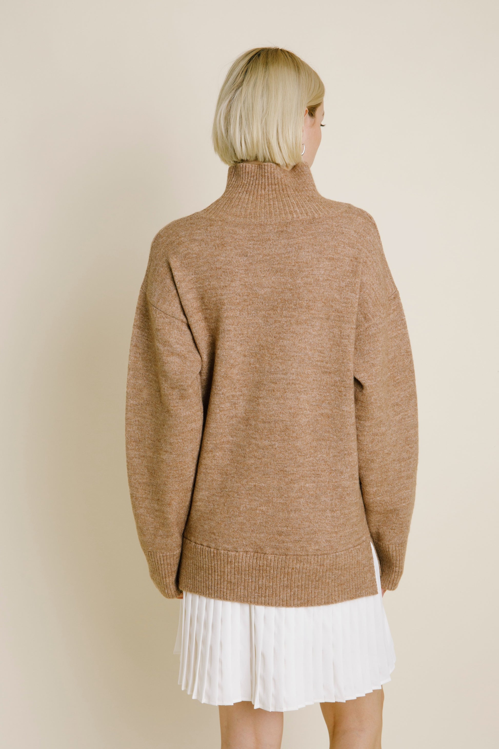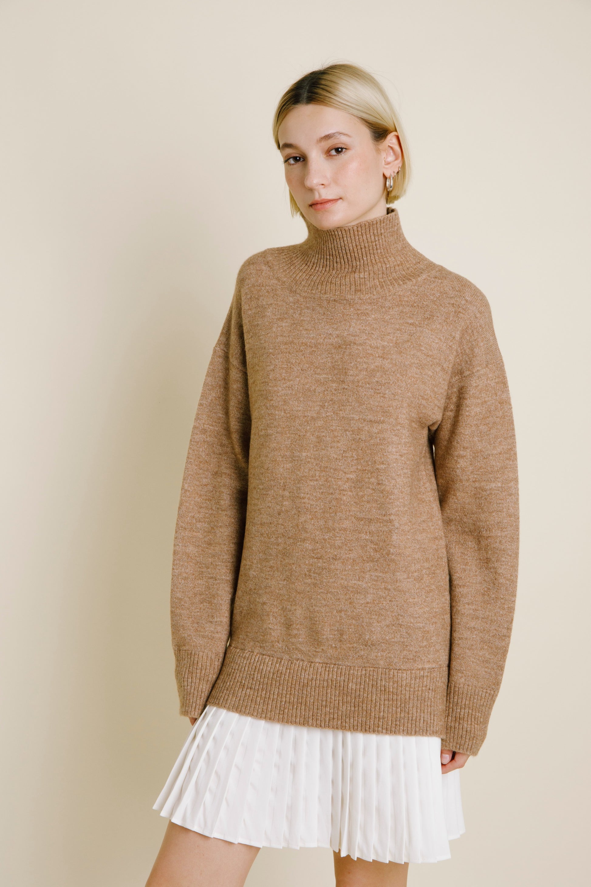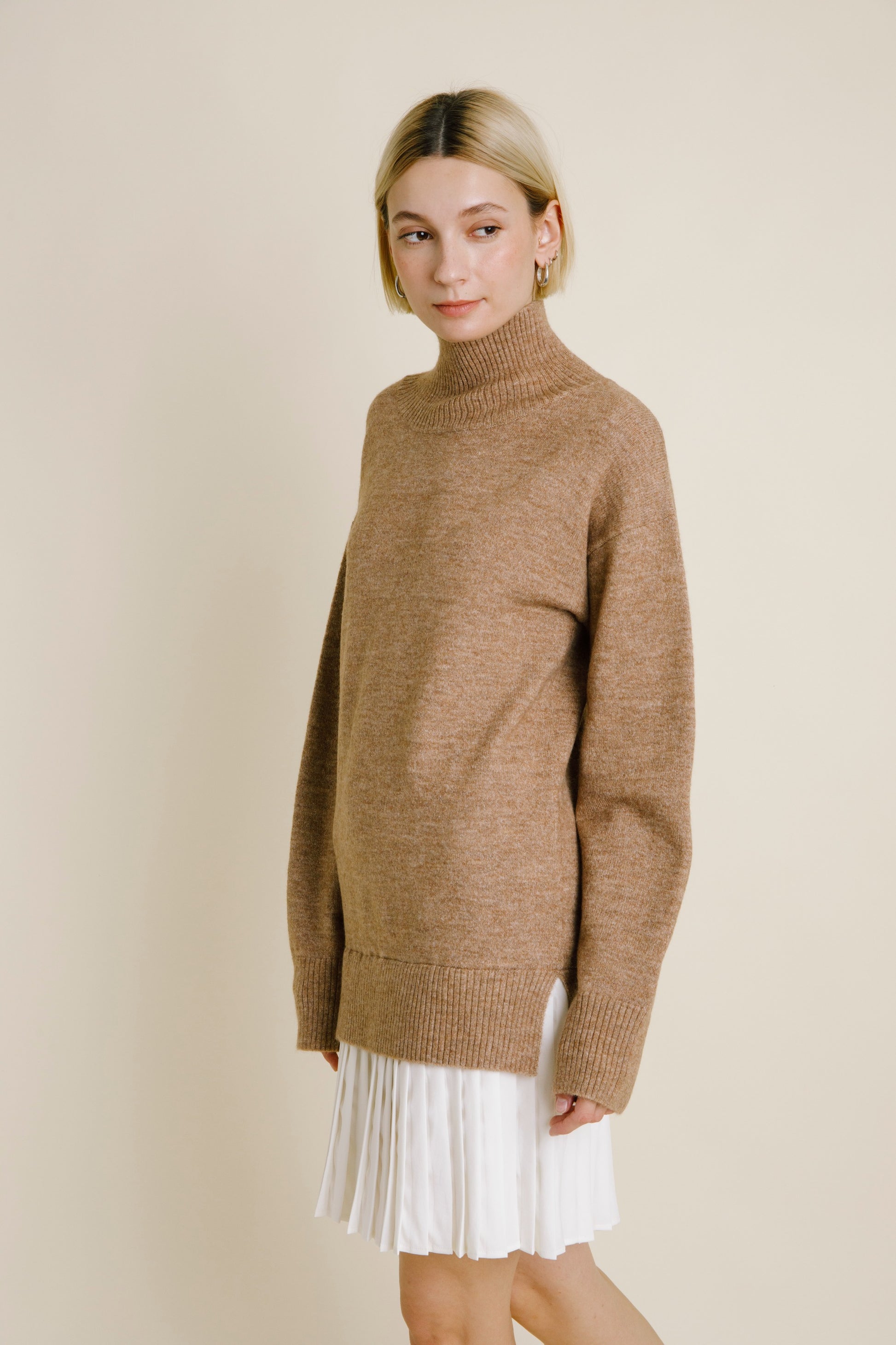 The Taupe Taylor Turtleneck Sweater Dress is the perfect blend of cozy and chic. With its dropped shoulders and pleated skirt, it's sure to make a statement whether you wear it with boots or heels. The long sleeves and relaxed fit make it a comfortable and versatile option for day to night wear. Stay warm and stylish in this dressy yet relaxed sweater dress.